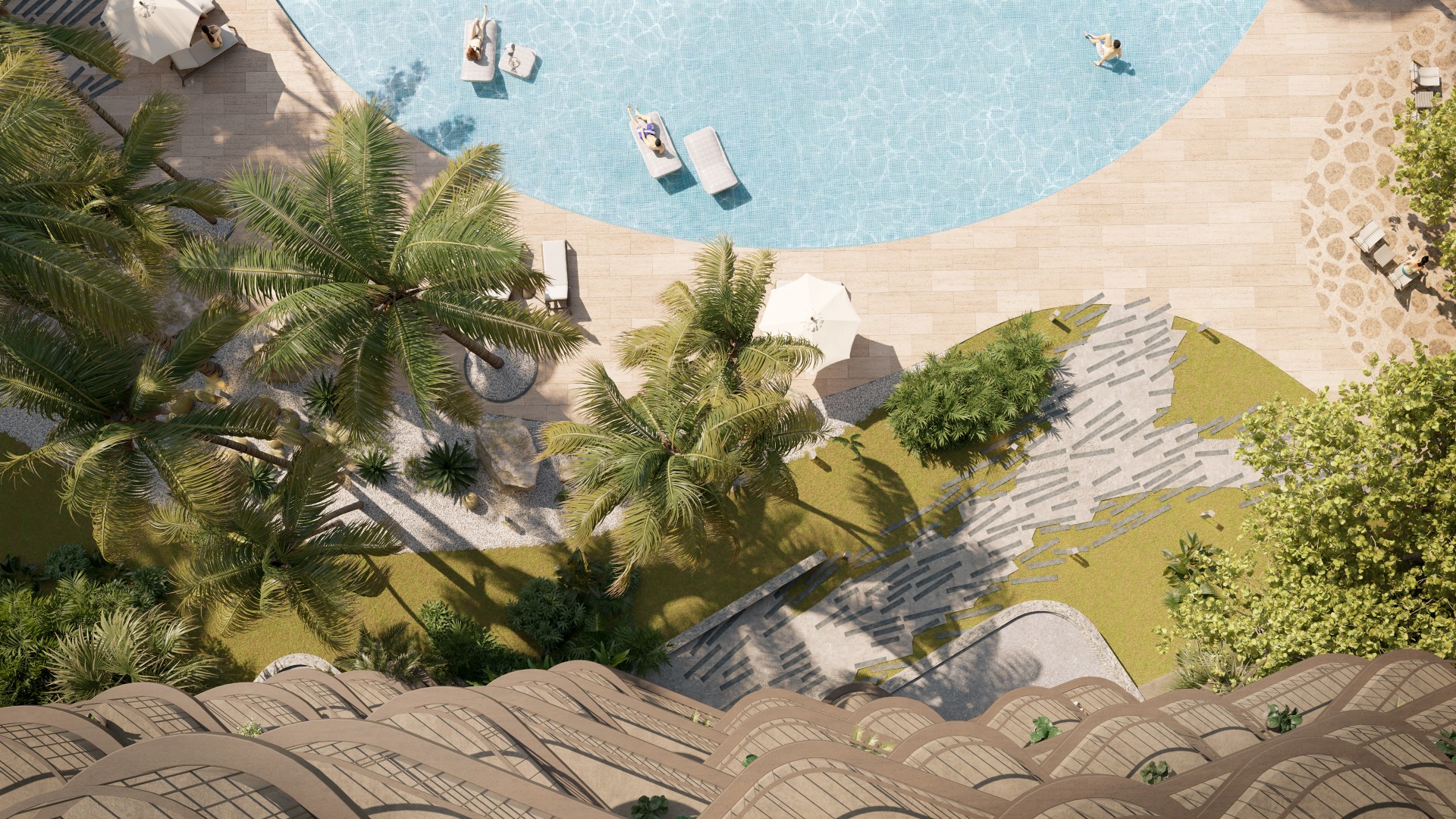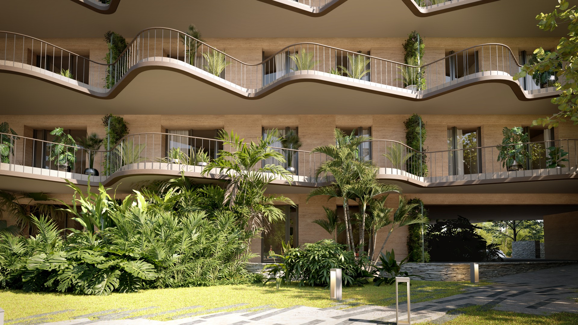 Meticulously designed across carefully planned phases, the inaugural stage of Macao Beach Residences features four elegant, low-to-mid rise buildings arranged around a massive, serene central park of over 6,000 m². The architecture is distinguished by sweeping, sinuous terraces that provide shade, dynamism, and stunning views of the lush surroundings, all while being clad in durable coralina stone.